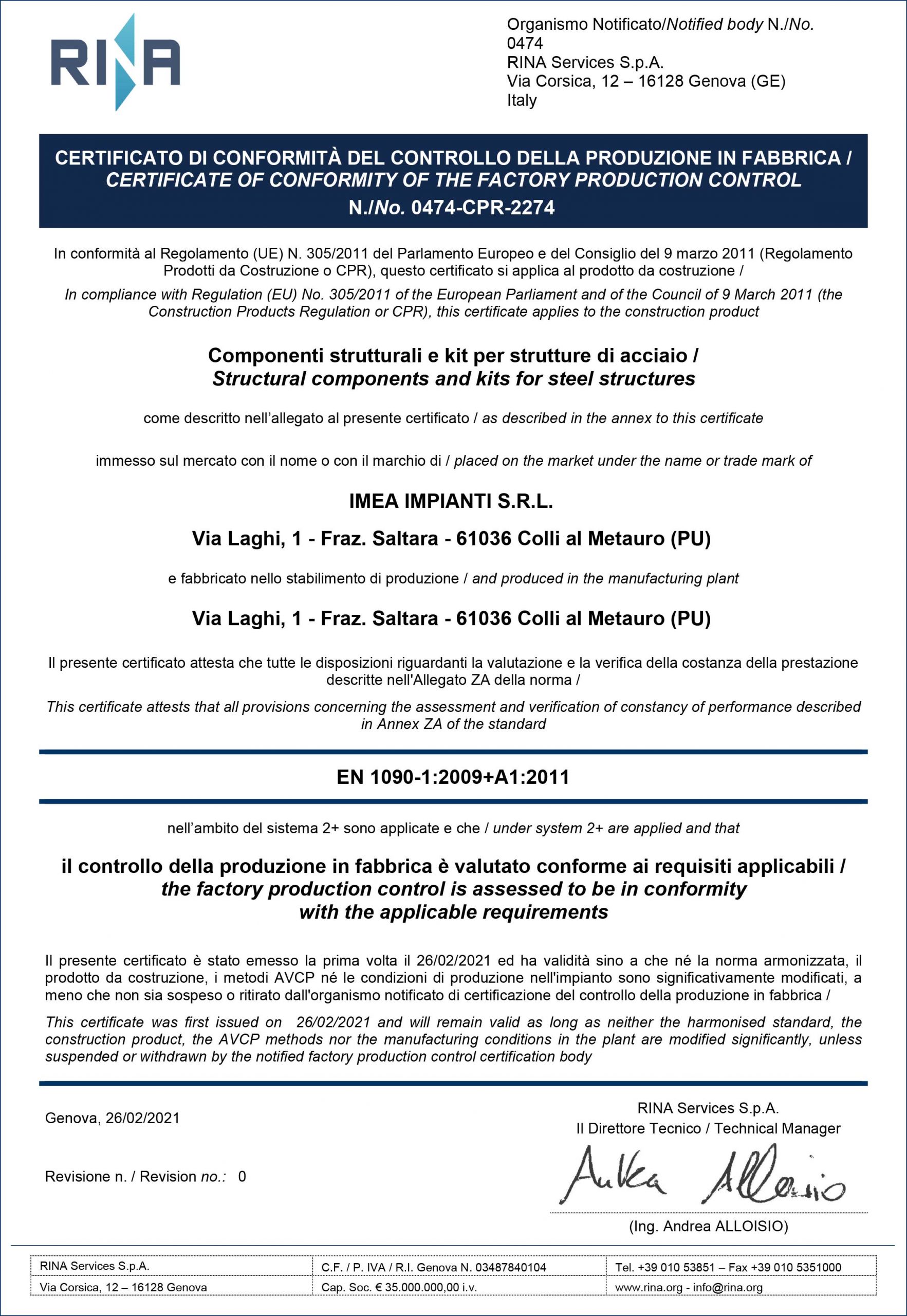 Certificato 0474-CPR-