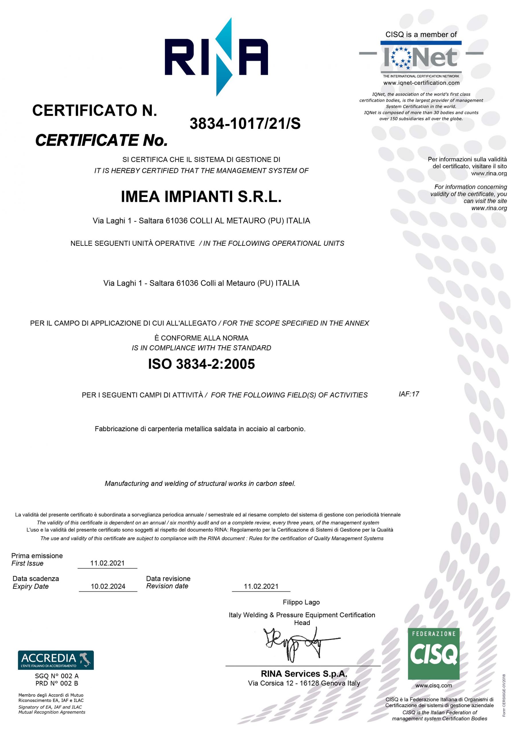 // certificato 3834